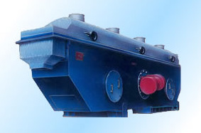 物料自进料口进入机内,在振动力作用下,物料沿水平流化床抛掷,向前连续运动,热风向上穿过流化床同湿物料换热后,湿空气经旋风分离器除尘后由排风口排出,干燥物料由排料口排出。