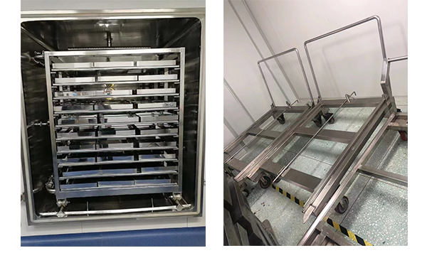 4)解决了设备清洗困难的问题,具备在线清洗功能,内烘车设计为可移动式,板层单独可拆,配外接车,清洁更方便;